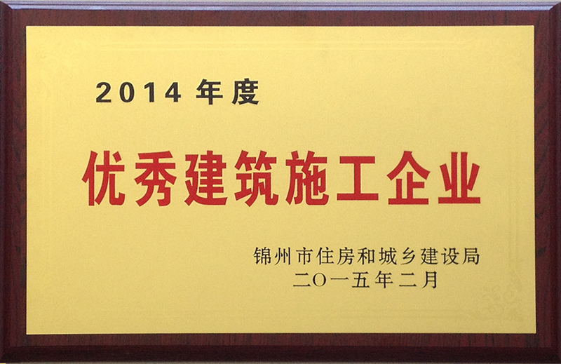2014年度优秀建筑施工企业-荣誉-旭峰建设有限公司